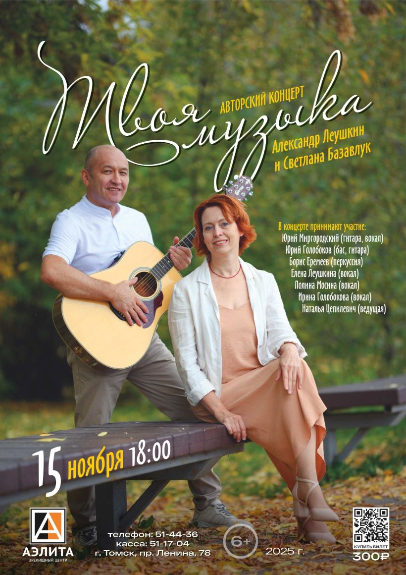 В субботу, 15 ноября в 18.00, творческое объединение «Миргород» представит авторский концерт Александра Леушкина и Светланы Базавлук «Твоя музыка».