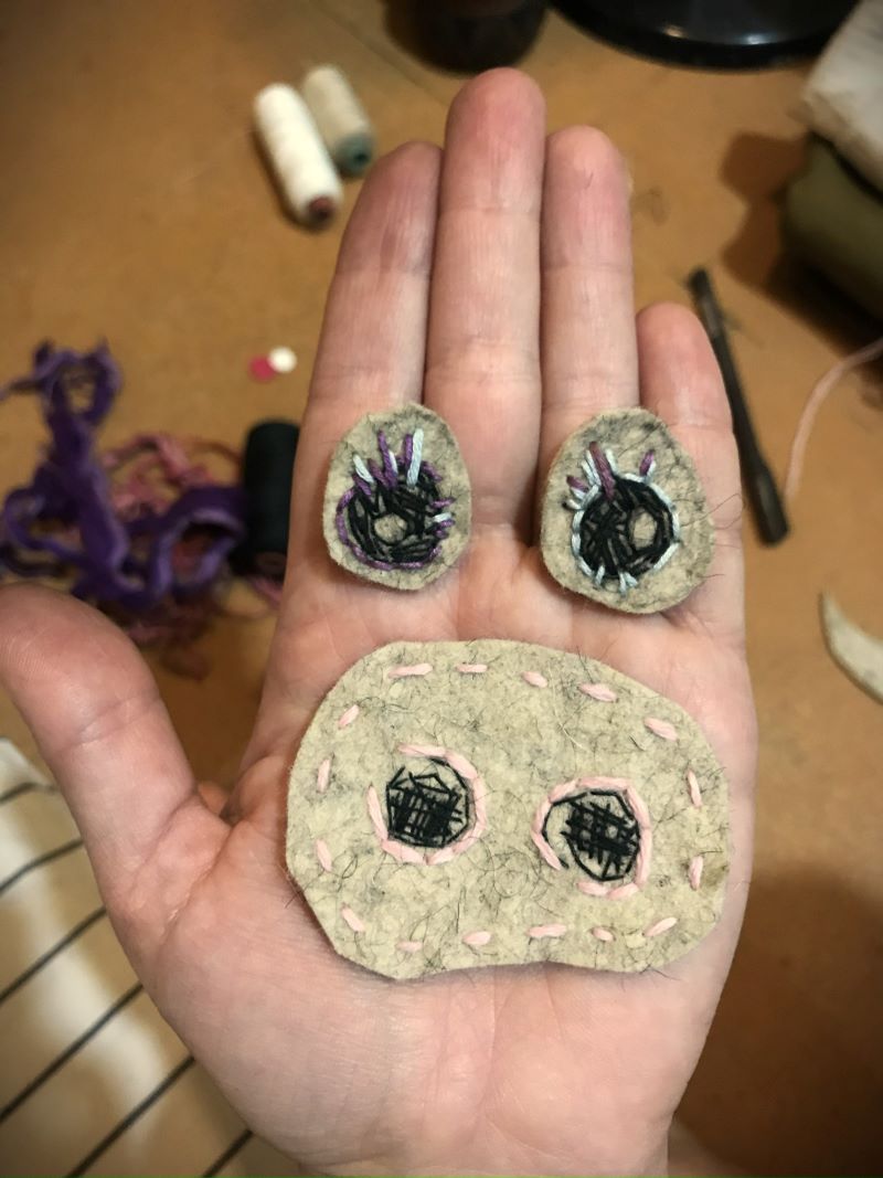 Вот придумала я сделать спектакль про Винни-Пуха и Кристофера Робина, а ещё решила, что в этом спектакле будут Иа-Иа. Сова, Кролик, Кенга, Ру и Пятачок — мягкими игрушками. И представила какими именно они будут, но никому не рассказала, не заказала, а взяла сама сшила. И вот, пожалуйста, моя любовь к шитью нашла своё воплощение. Это очень приятно. В это же время меня сильно вдохновила вышивка гладью. О, как же это красиво! И взяла я и вышила планету на афише спектакля. Не очень-то я умелый вышивальщик, но зато мои руки попробовали новое дело и результат его пригождается.
