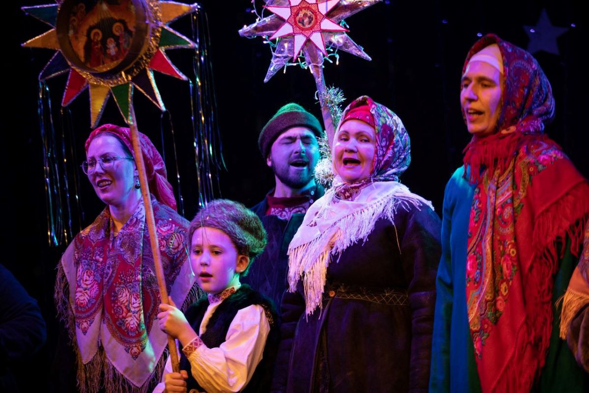 В гости к нашим зрителям пришли Христославы с рождественскими песнопениями, в которых поётся о рождестве младенца Иисуса. Ряженые привели с собой козу, которая повеселила зрителей своими хитрыми выходками. В народной драме "Смерть царя Ирода" - царь Ирод получил по заслугам за свои злодеяния. В избе, в зловещей тишине, три женщины крестьянки рассказали страшные былички, и не успев договорить, к ним в избу приходят странные гости с покойником. Было и страшно и весело, и жутко и прекрасно. Были и смех и слёзы! И всё наше действо закончилось редкой новогодней поздравительной песней! ФЭА "Пересек" пожелал зрителям добра и благополучия в новом году!